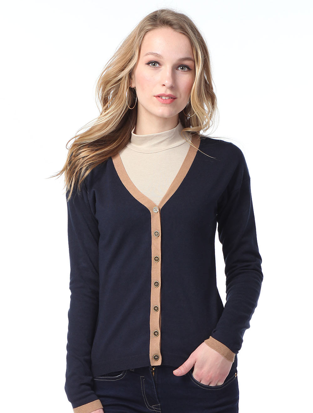 Описание: Тонкая вискозная вязка. Рукав с актуальной спущенной проймой. Металлические пуговицы цвета состаренного золота.
