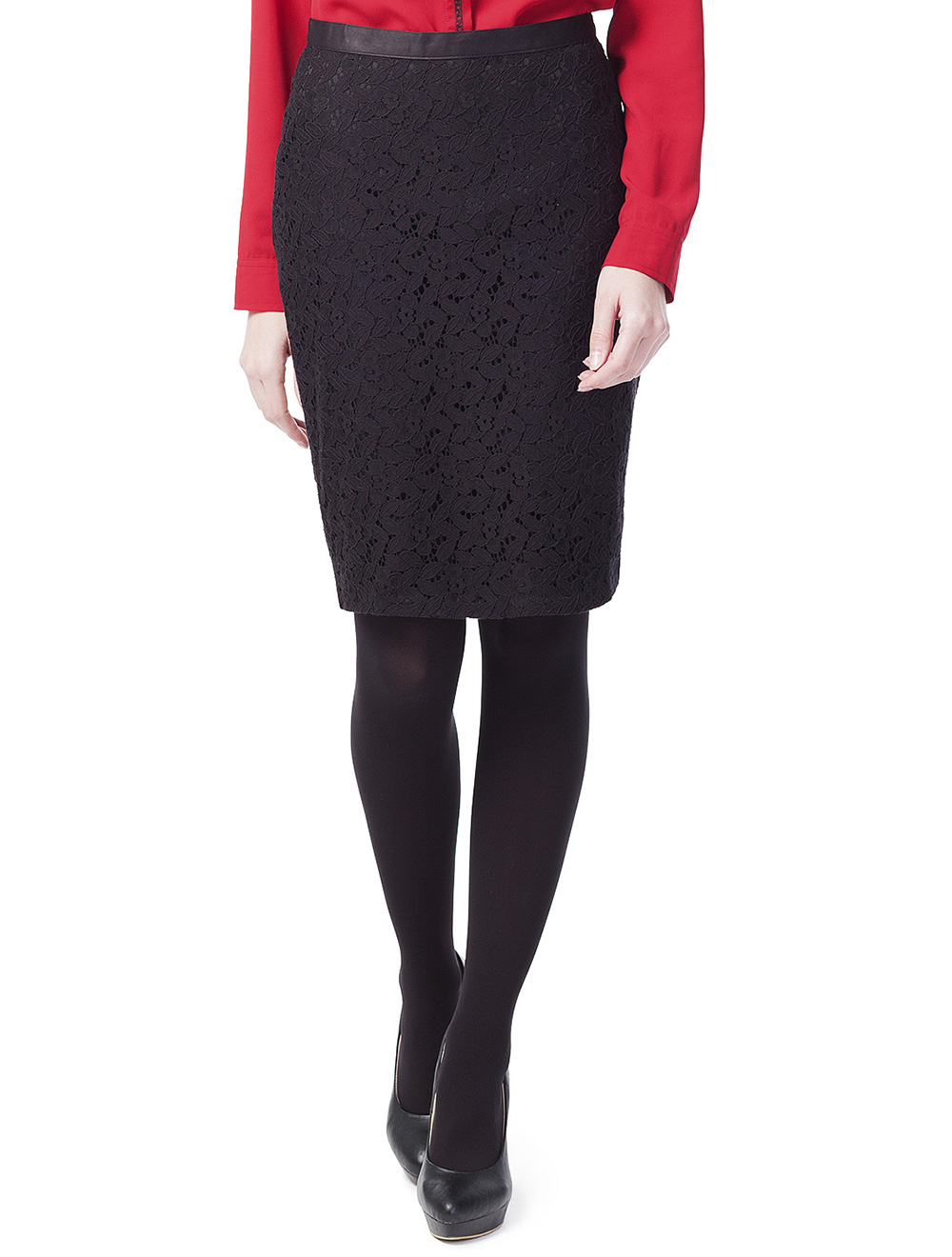 Описание: Юбка выполнена из матового неэластичного гипюра на подкладке. Застежка на золотистой молнии. В больших размерах юбка до колена.