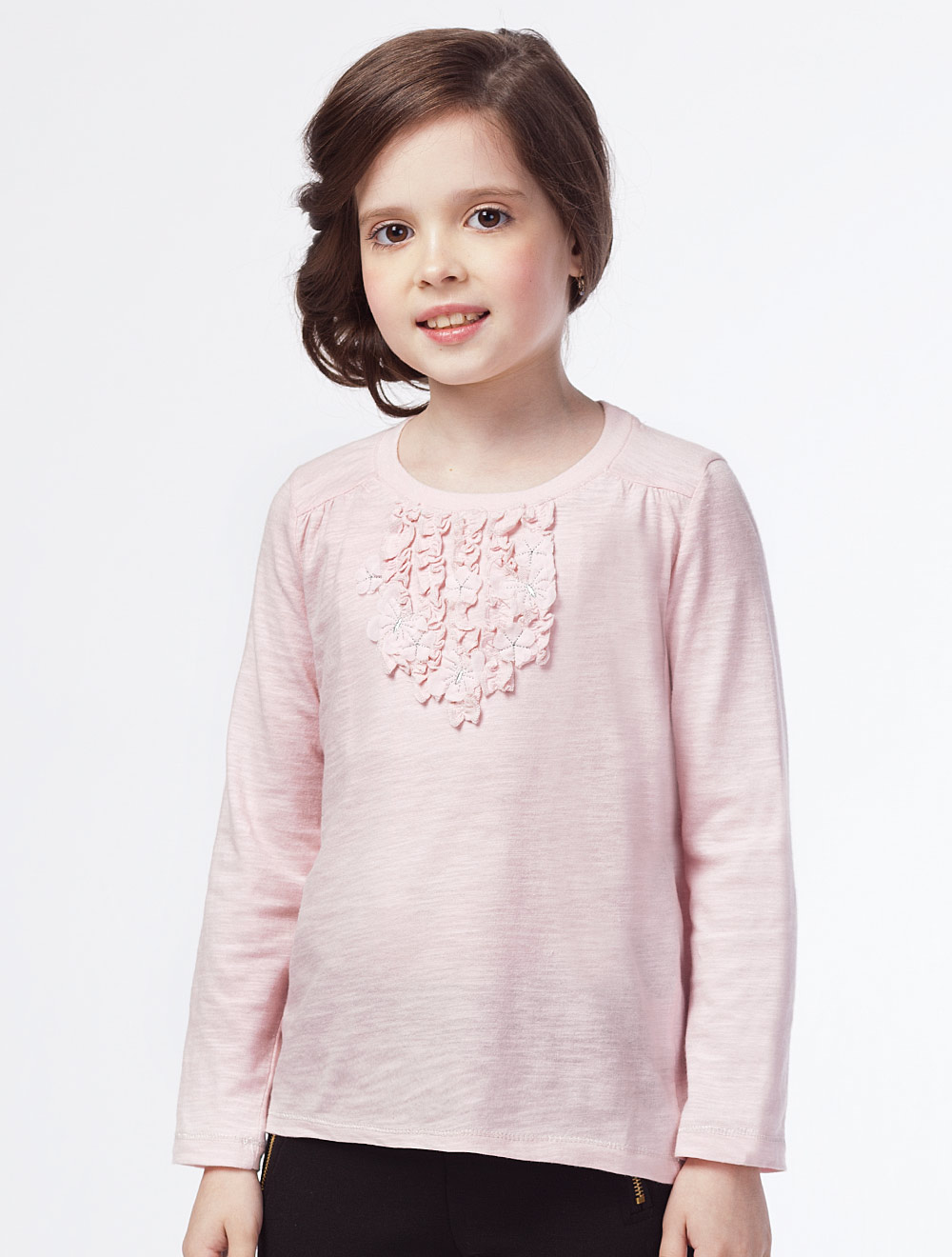 Описание: Джемпер украшен декоративными рюшами спереди. Нашивка в виде бабочек.