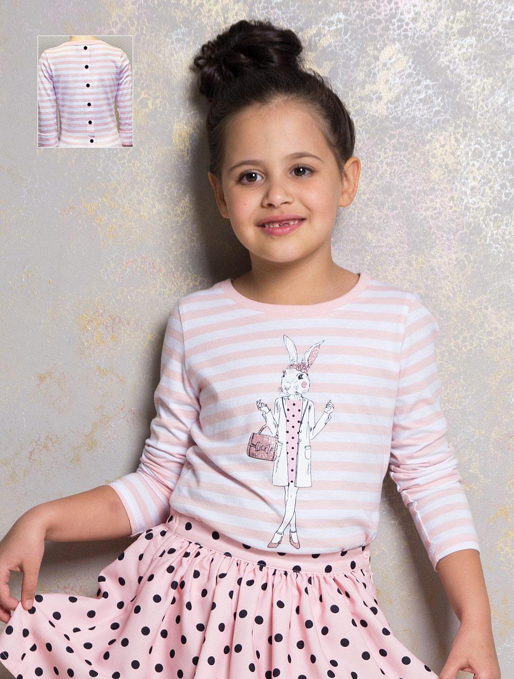 Описание: Футболка из тонкого хлопкового трикотажа, декорирована принтом. По центру спинки выполнена застежка-обманка с пуговицами.