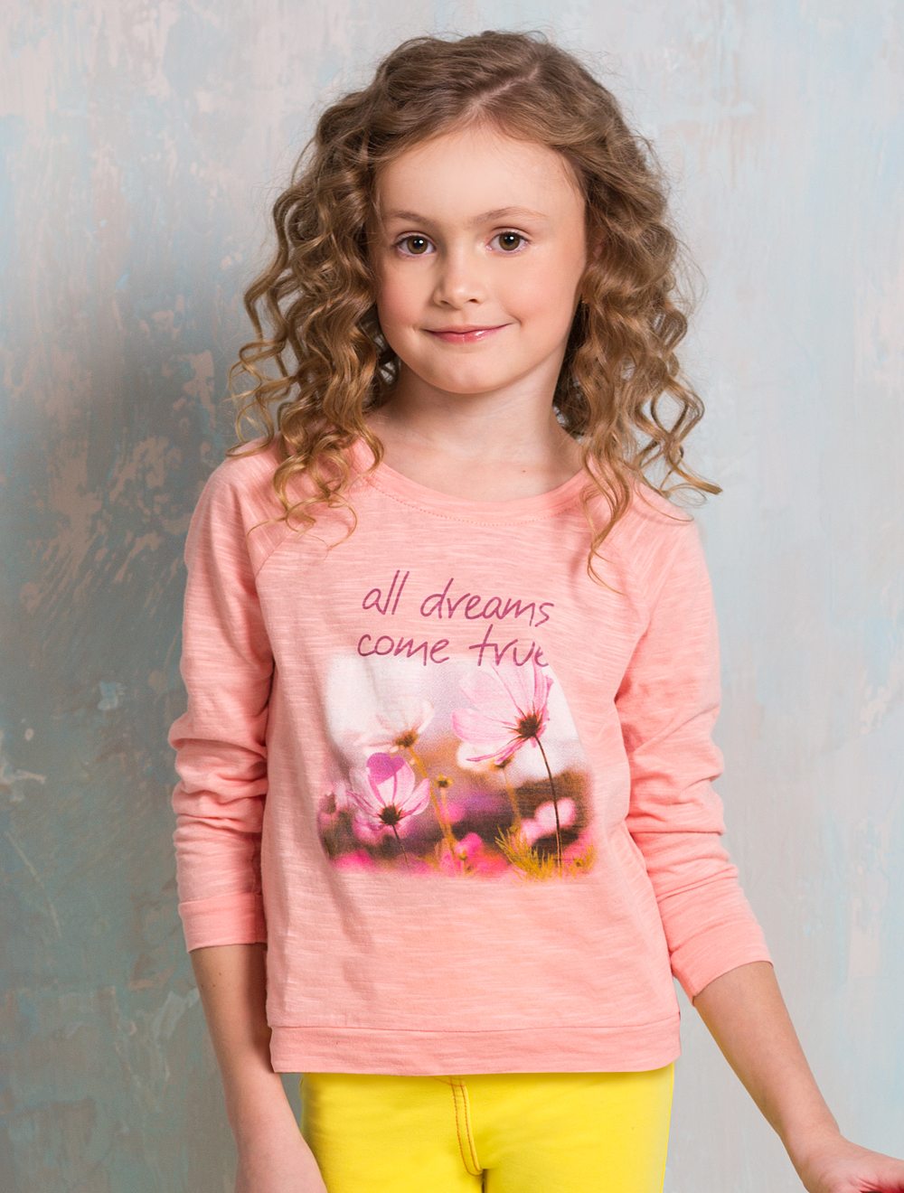 Описание: Свободная футболка для девочки с рукавами покроя реглан. Манжеты и обтачка горловины из основного материала. Перед слегка короче спинки за счет фигурной линии низа.