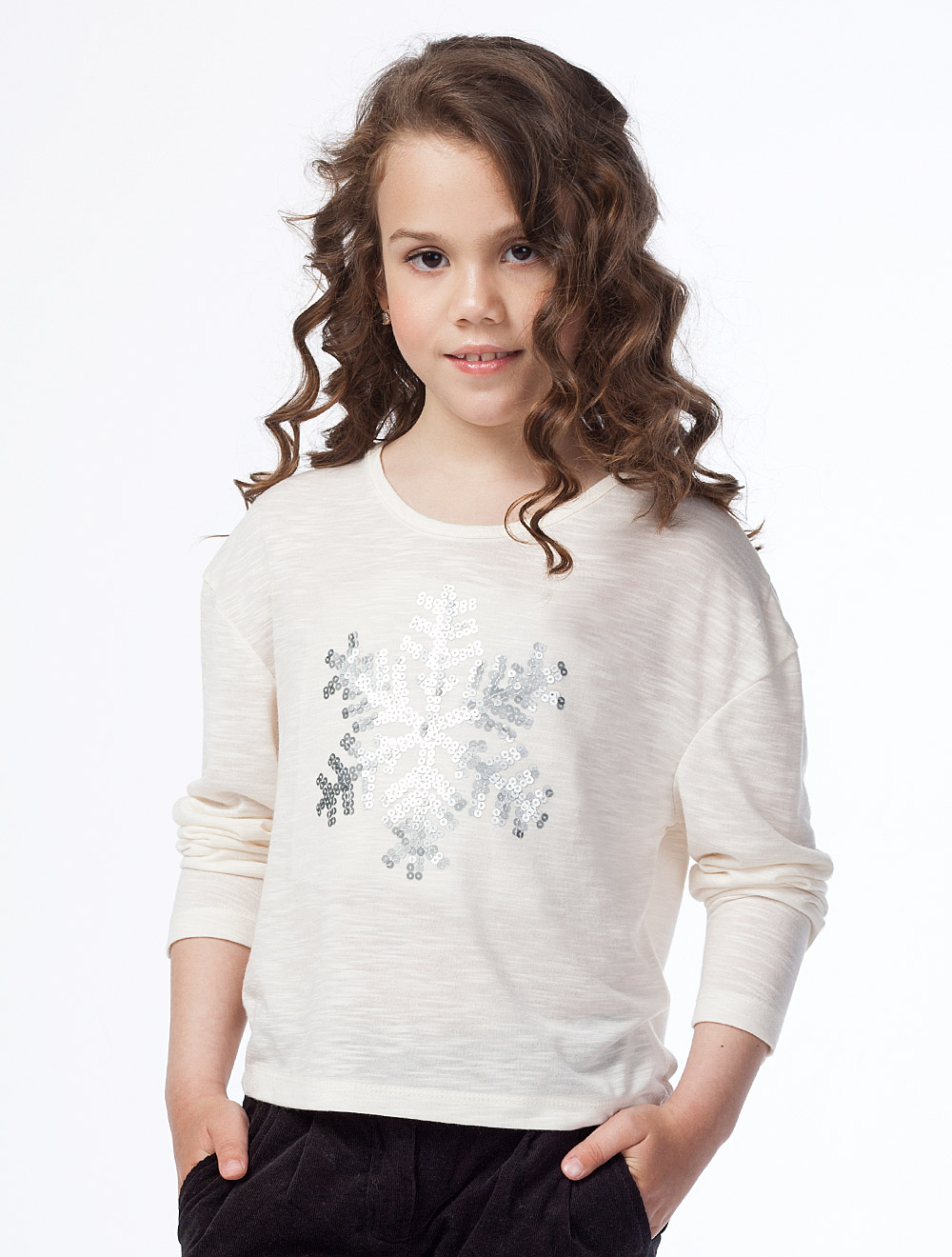 Описание: Джемпер из трикотажного полотна с вышивкой пайтками на груди.