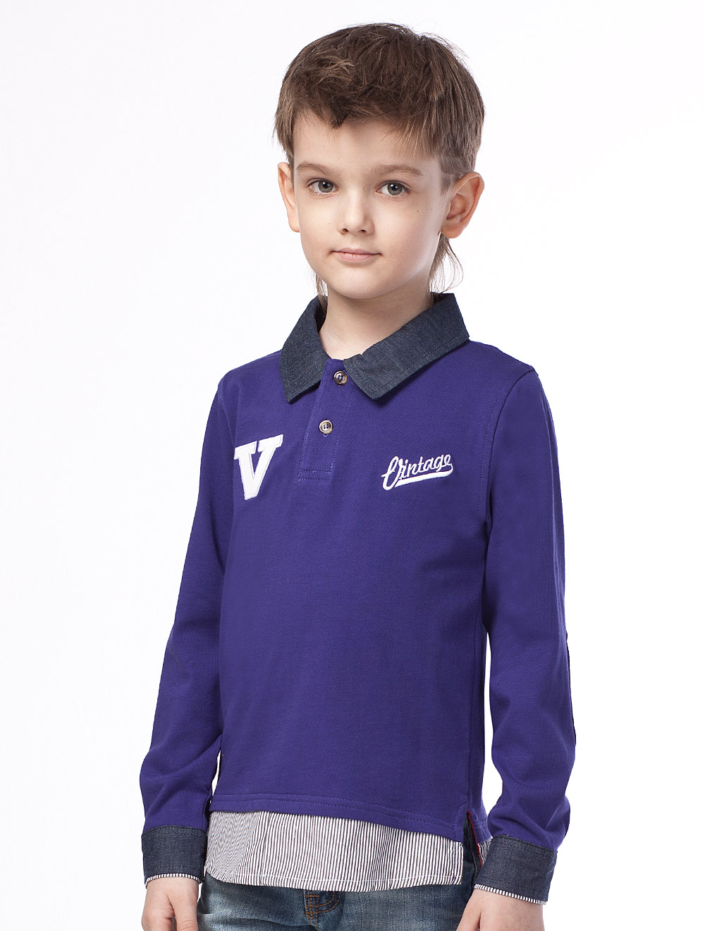 Описание: Футболка поло из трикотажного полотна с деталями из джинсовой и сорочечной ткани, декорированная вышивкой на груди.