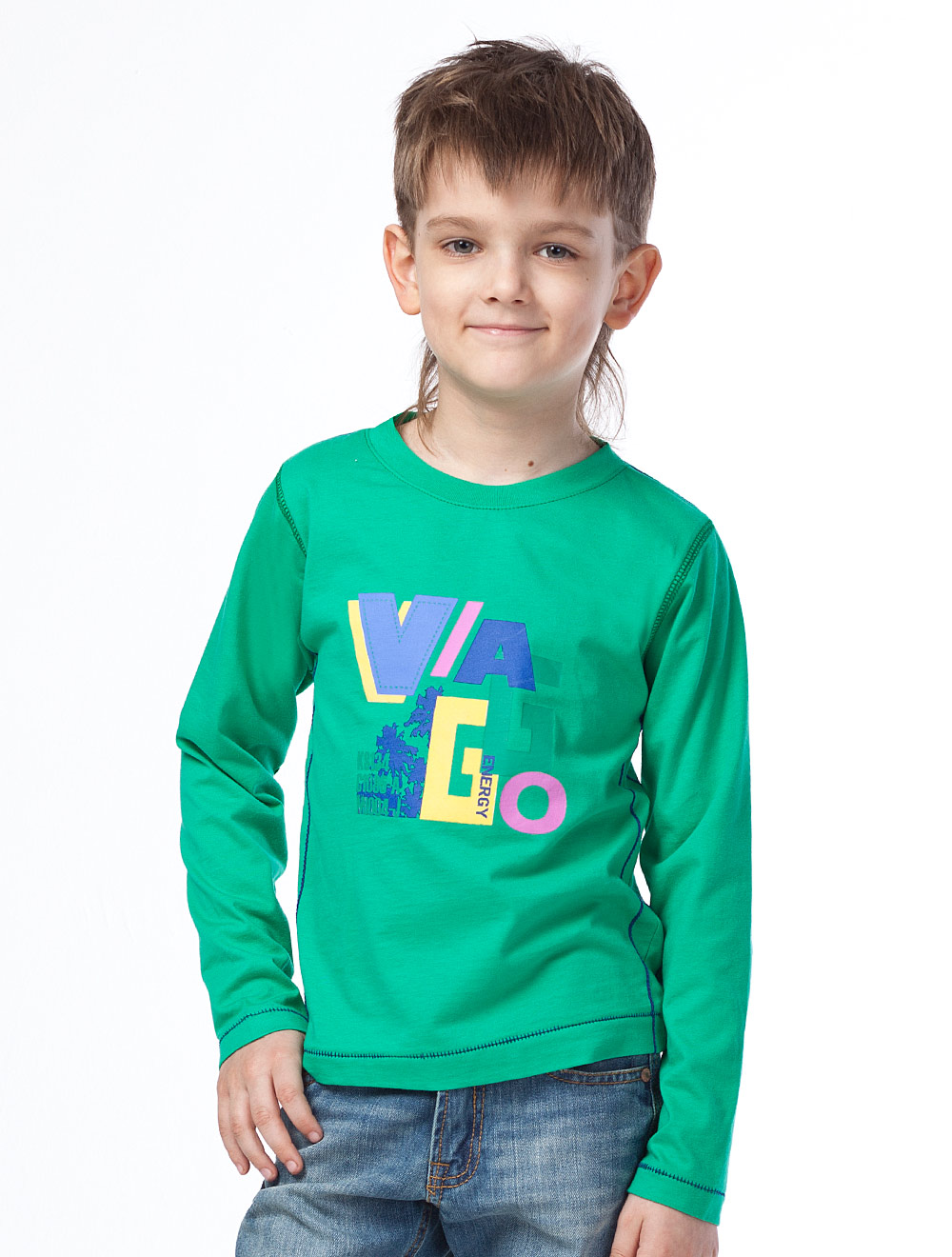 Описание: Футболка из трикотажного полотна, декорированная аппликацией и принтом