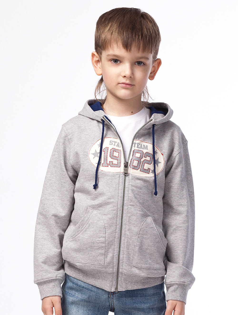 Описание: Джемпер для мальчика с капюшоном из плотного трикотажного полотна. Внутренняя часть капюшона выполнена из контрастного тонкого трикотажа в тон нашивки на груди.