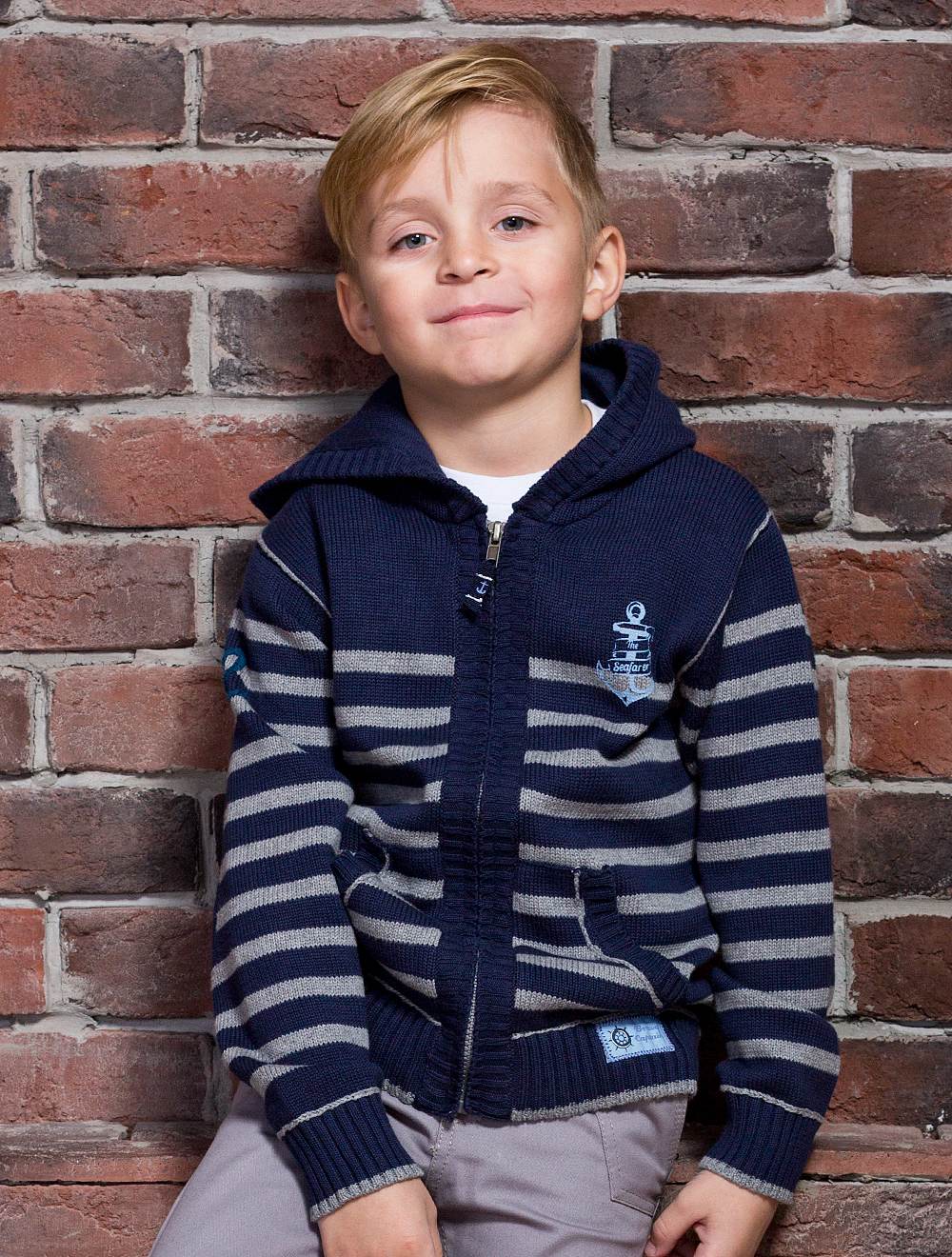 Описание: Жакет плотной хлопковой вязки с капюшоном, принт на груди, вышивка на рукаве, небольшая нашивка с принтом внизу переда, вышивка на тесьме-подвеске молнии.