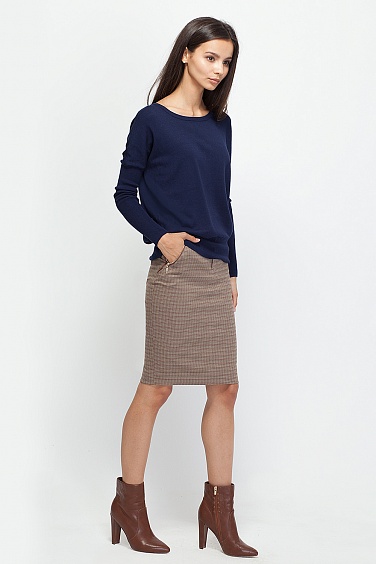 Тонкая вязка. Свободный силуэт верха, с плотным прилеганием по низу и узкие эластичные рукава, связанные тонкой резинкой 1*1