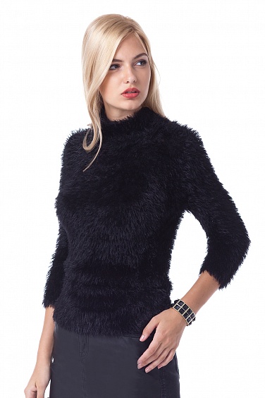 Свитер выполнен из пряжи с эффектом меха. Очень мягкий и пластичный, отлично тянется и очень комфортен к телу.