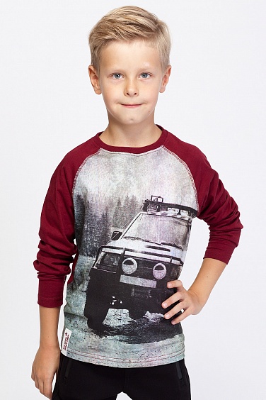 Футболка с фотопринтом из хлопкового трикотажа. Спереди по низу изделия текстильная нашивка.