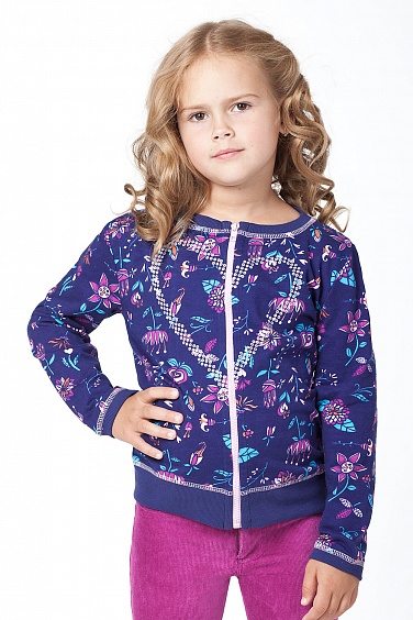 Джемпер для девочки из принтованного футера. Застежка на пластиковую молнию. Перед изделия декорирован принтом с глиттером.