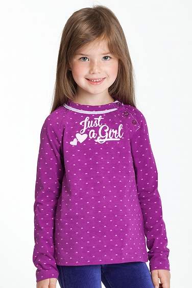 Футболка из принтованного хлопкового трикотажа с горловиной с открыым срезом. Под горловиной сборка, спереди имитация затежки на пуговицы. Перед изделия декорирован принтом.