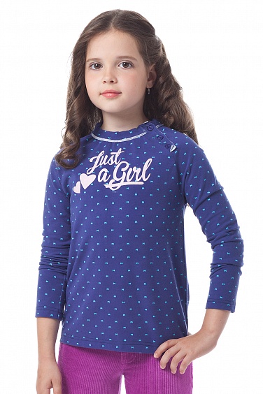 Футболка из принтованного хлопкового трикотажа с горловиной с открыым срезом. Под горловиной сборка, спереди имитация затежки на пуговицы. Перед изделия декорирован принтом.