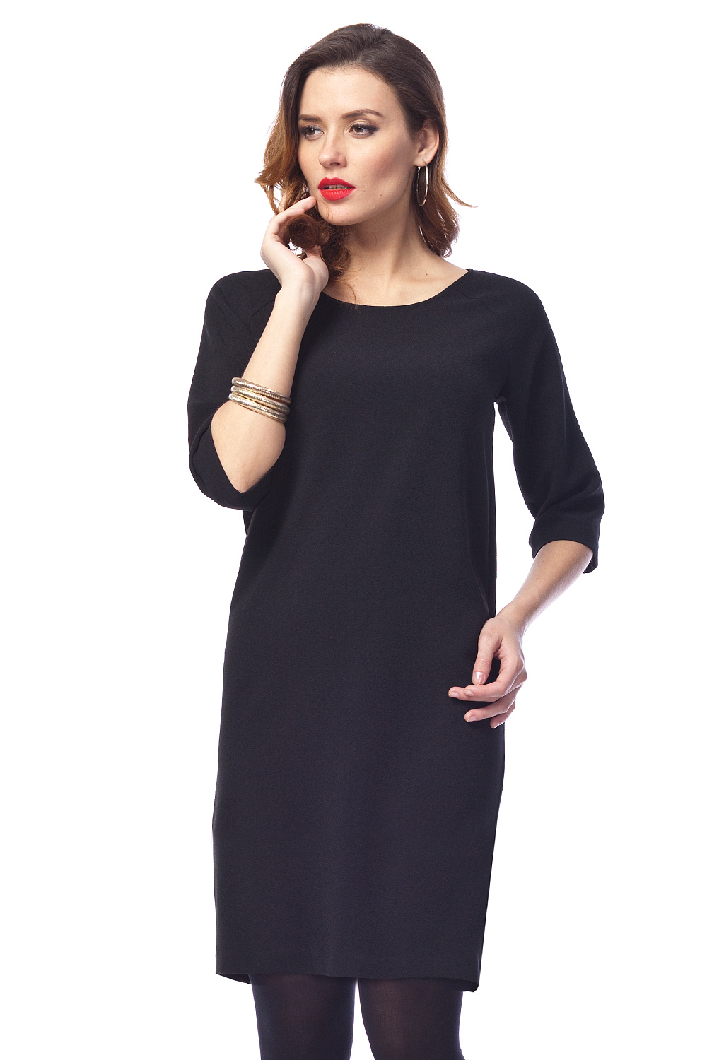 Платье свободного силуэта с рукавом 3/4 из фактурной ткани.