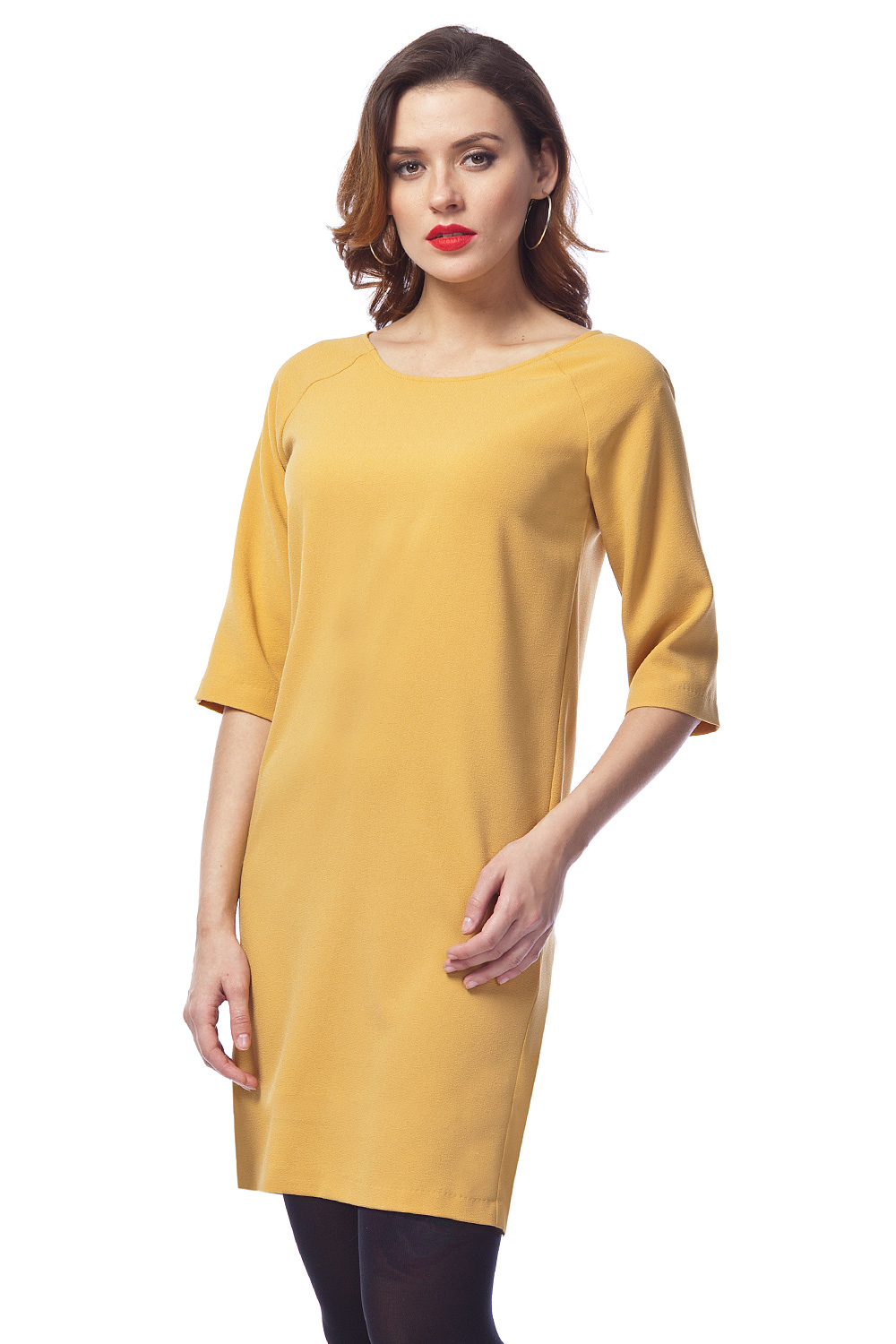 Платье свободного силуэта с рукавом 3/4 из фактурной ткани.