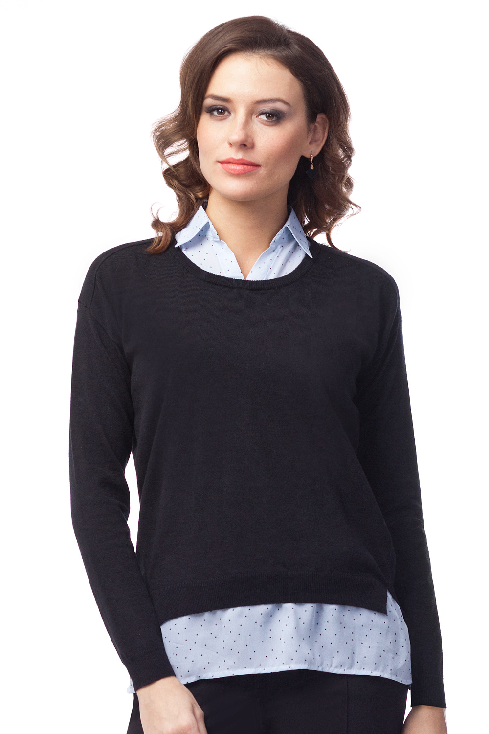 Джемпер тонкой вязки с декоративными вставками с имитацией блузки.