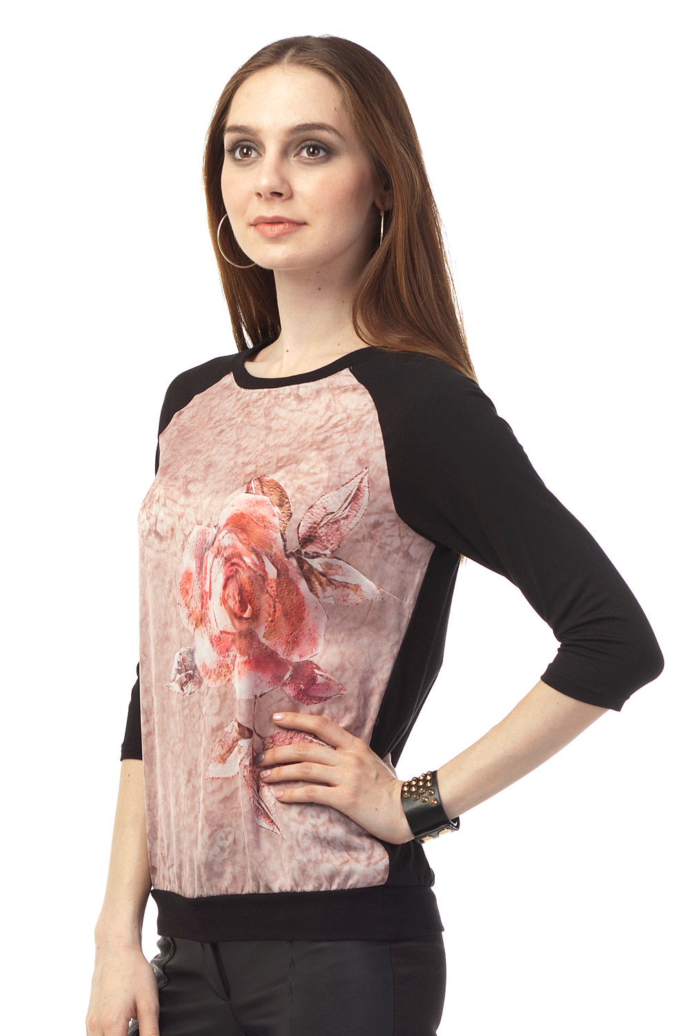 Футболка с принтованной передней частью с длинным рукавом. Передняя часть выполнена из полуглянцевой струящейся ткани, спинка и рукава - трикотажные. Принт имитирует фреску.