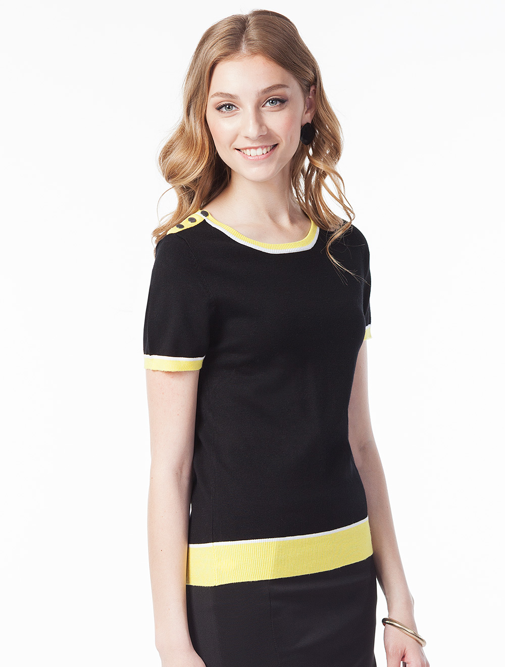 Описание: Тонкая вискозная вязка.правое плечо украшено планкой черного цвета с пуговицами под серый перламутр.
