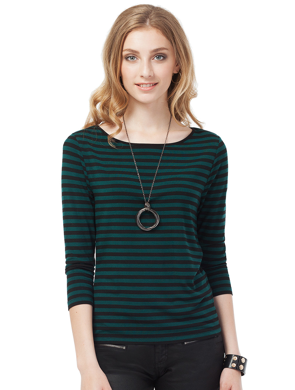 Описание: Эластичная трикотажная вискоза. Приталенный силуэт, вырез горловины по форме "лодочка" с черной окантовкой. Рукав 3/4.