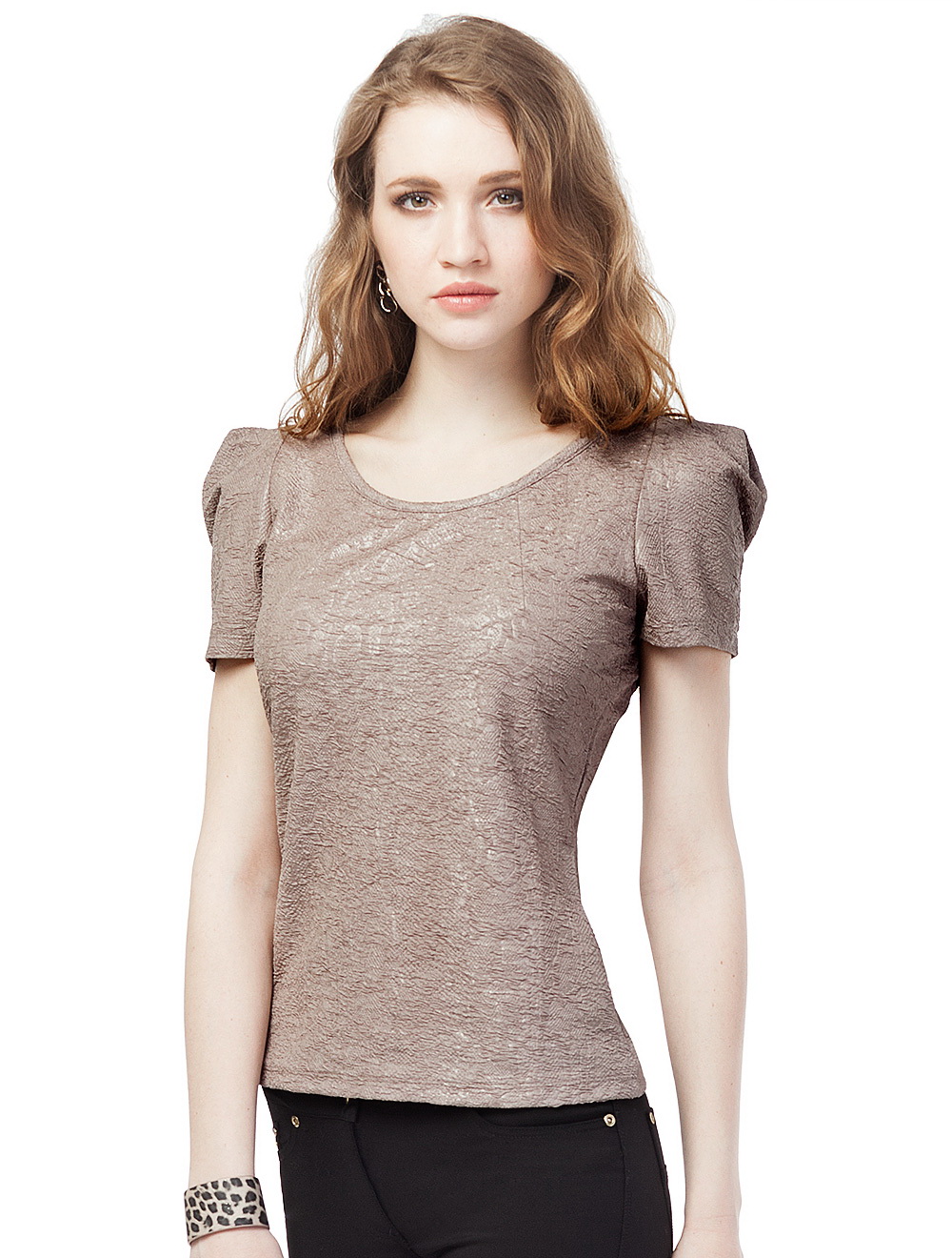 Описание: Плотный трикотаж с жаккардовой фактурой под кожу питона. Полуприлегающий силуэт с эффектным оформлением оката рукава.