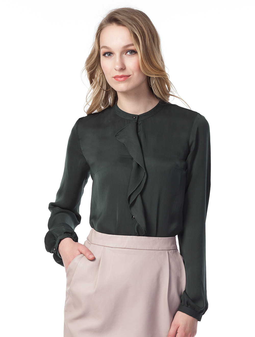 Описание: Полуматовый атлас. Застежка на металлические пуговицы-бусины, декорирована воланами