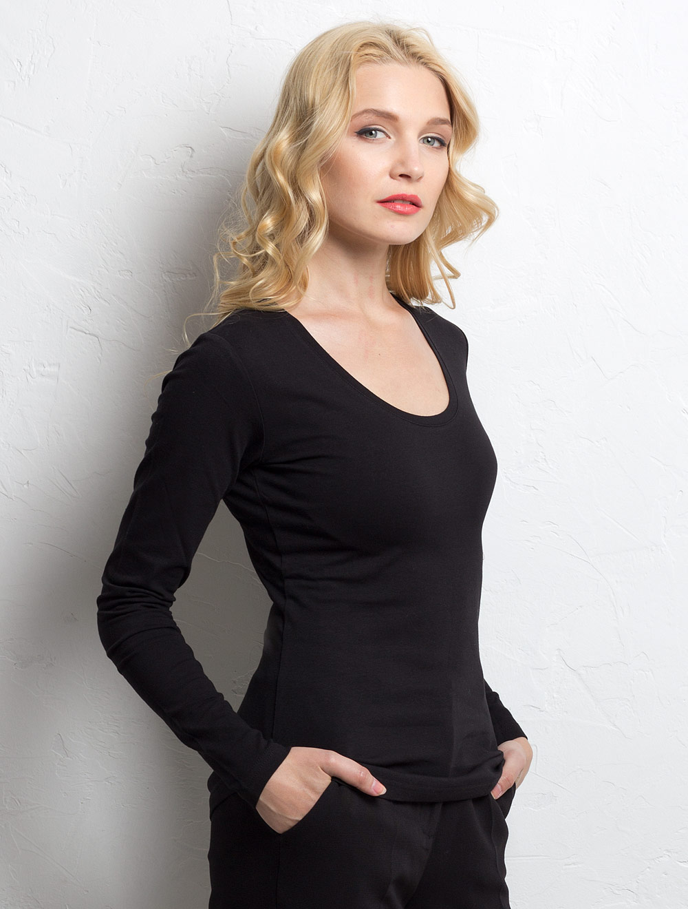 Описание: Футболка женская с круглой горловиной и длинным рукавом
