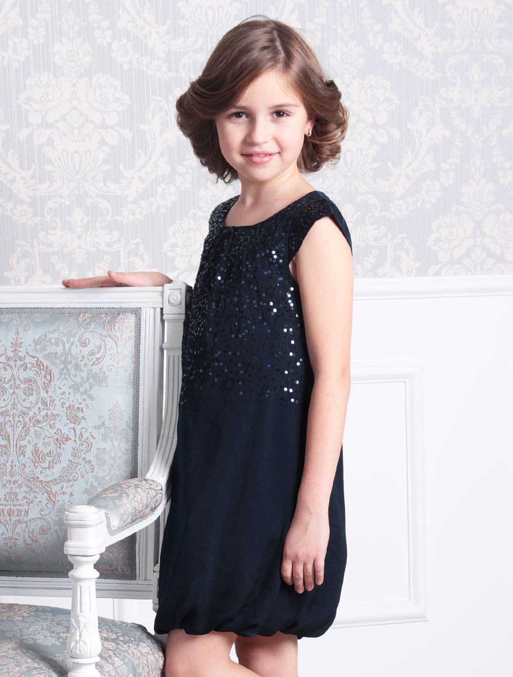 Описание: Платье-баллон свободного кроя. Верхняя часть расшита мелкими пайетками. Подкладка 65% хлопок 35% ПЭ