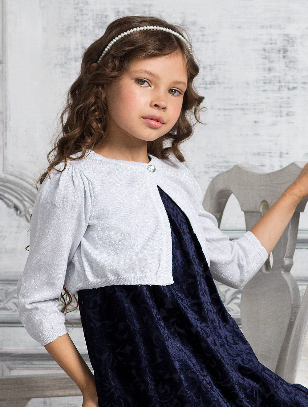 Описание: Вязаный жакет с люрексом, рукав со сборкой в верхней части. Застежка на декоративную пуговицу.