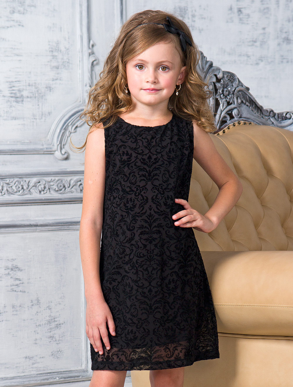 Описание: Платье выполнено из прозрачной трикотажной сетки с бархатным узором. Подкладка 100% ПЭ из тонкого трикотажа шоколадного цвета. На спинке разрез-капля с застежкой на воздушную петлю и пуговицу.
