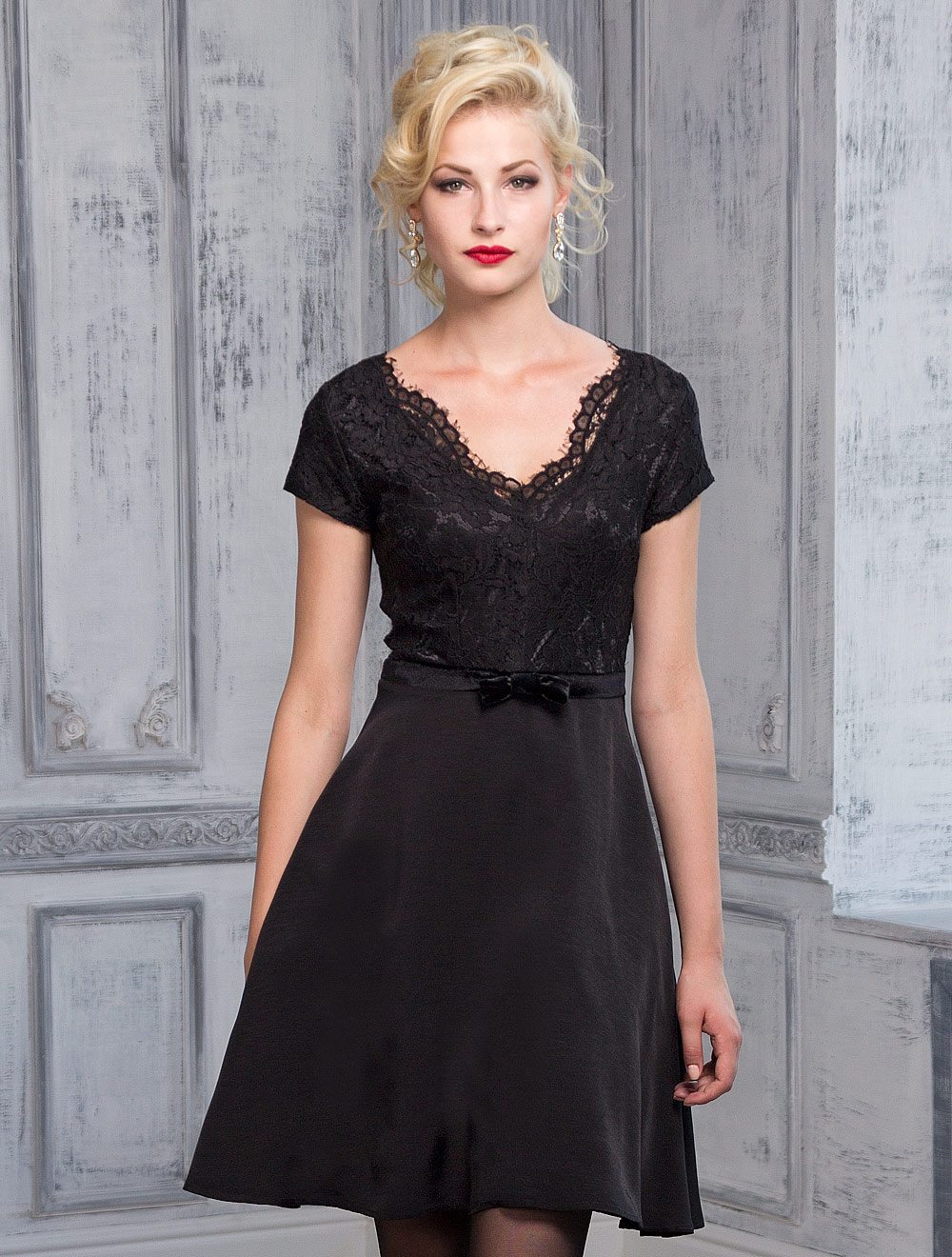 Описание: Верхняя часть платья выполнена из кружева на подкладке. На талии декоративный бант-пояс и бархатной ленты. Подкладка юбки дополнена воланом с сеткой. Потайная молния в боковом шве.В больших размерах длина платья до колена.