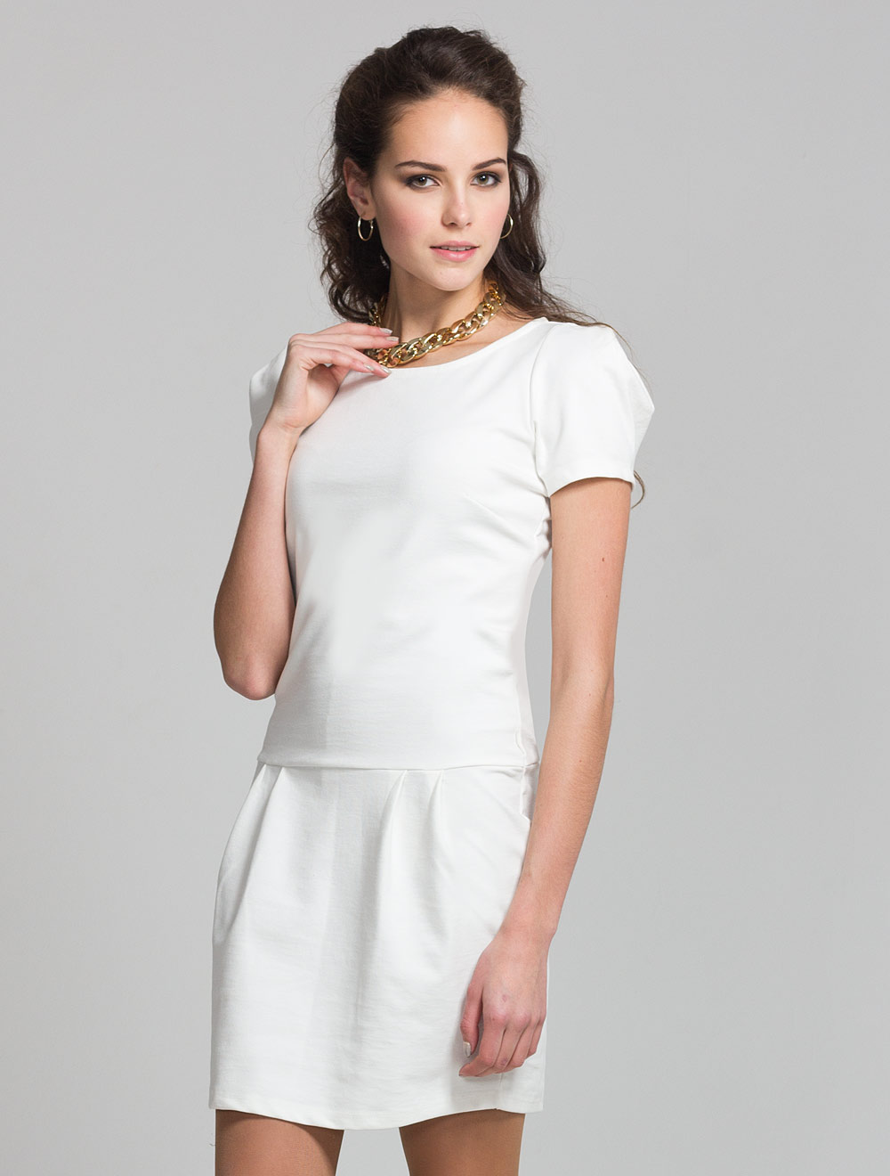 Описание: Платье выполнено из плотного джерси, заниженая талия, золотистый пояс входит в стоимость изделия