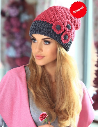 Краткое описание: двойной подворот до середины головы, крупная вязка