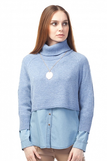 Ультра-модный ассиметричный джемпер мелкой вязки с объёмной горловиной и рукавом реглан. Выполнен из пряжи с высоким содержанием шерсти, деталь переда укорочена, по бокам небольшие декоративные разрезы,на плечах и рукавах декоративная вывязанная "коса".