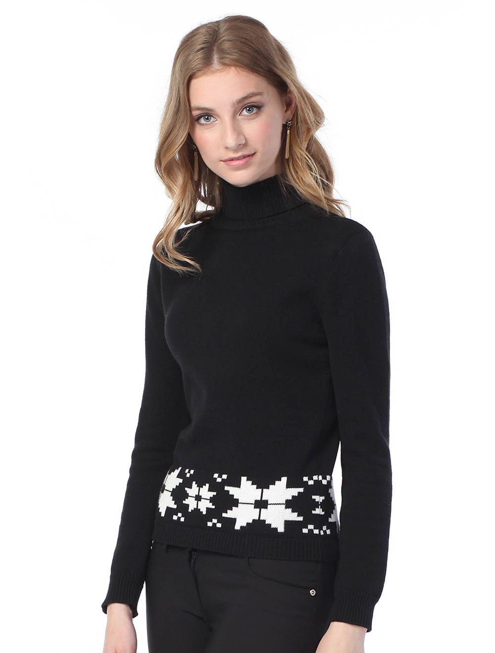 Описание: Плотная вязка из хлопка с эффектом меланж. Базовый прилегающий силуэт. Низ вывязан узором из графичных снежинок.