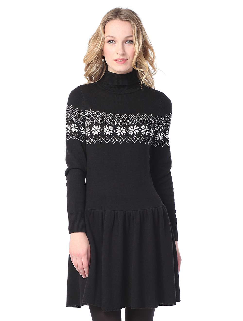 Описание: Мягкая вязка средней плотности. Высокая горловина. Заниженная линия талии и пышная юбка на легкой сборке. В больших размерах изделие по колено.