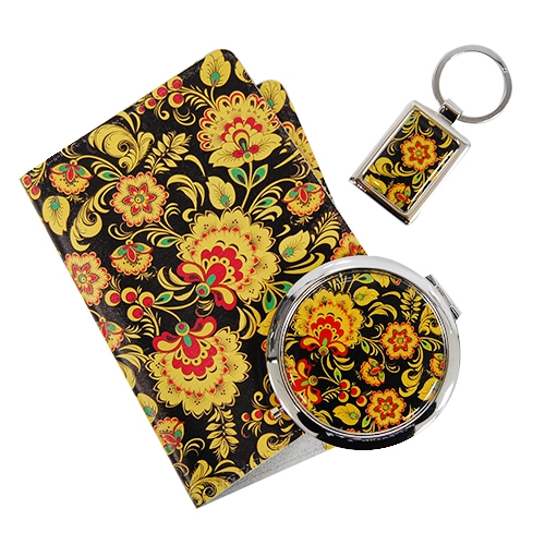 Набор: обложка для паспорта из натуральной кожи, брелок и зеркало в упаковке