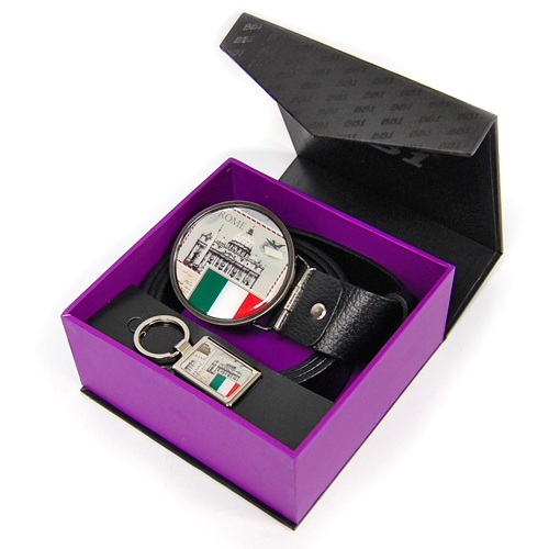 Набор подарочный в фирменной коробке: ремень кожаный и брелок для ключей в итальянском стиле.