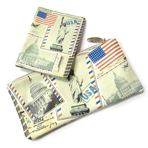 Набор подарочный в американском стиле: косметичка с двумя отделениями и обложка для паспорта с карманами для карточек.