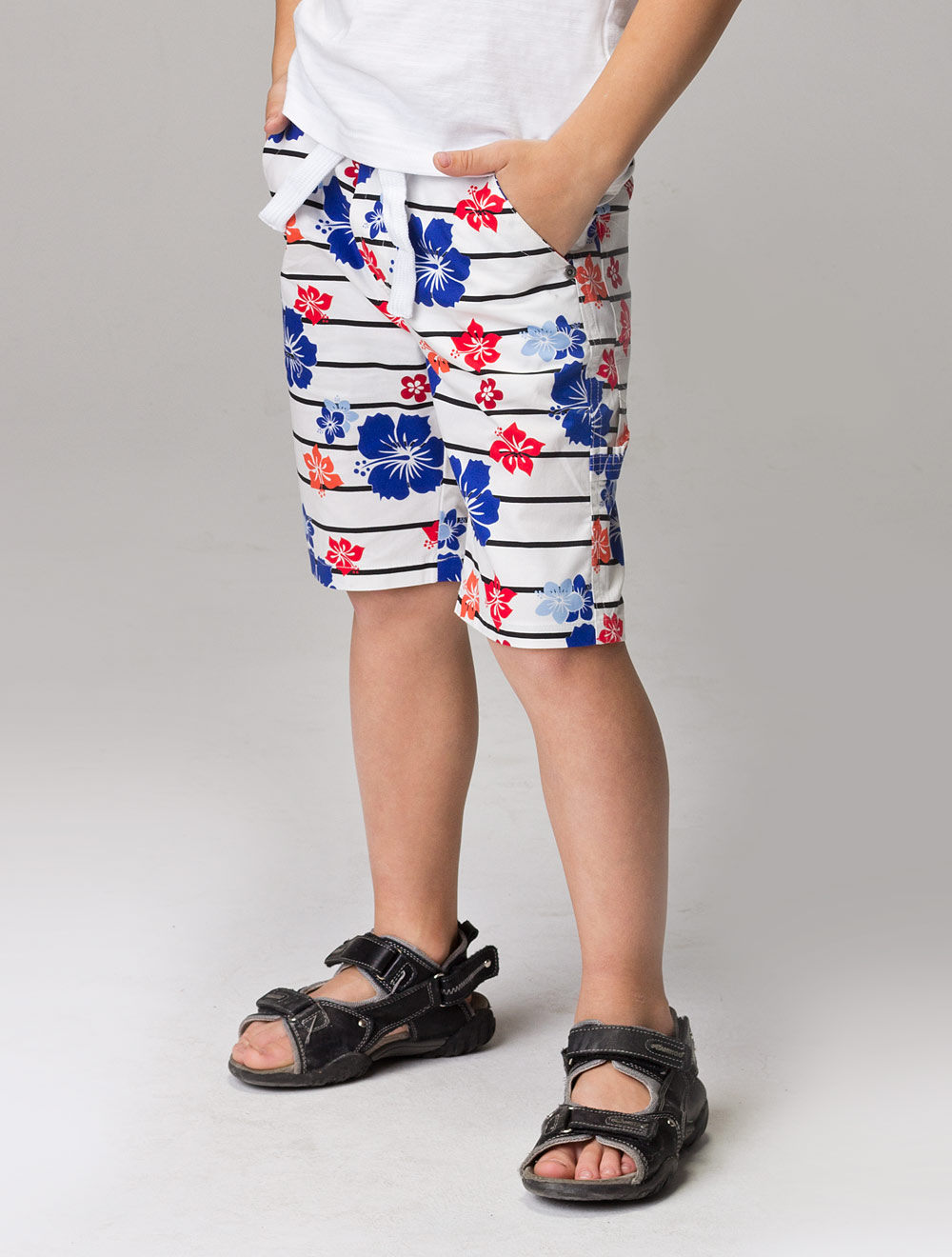 Описание: Шорты их хлопковой ткани. Пояс из трикотажа на резинке.