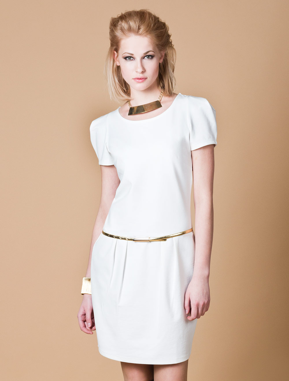 Описание: Платье выполнено из плотного джерси, заниженая талия, золотистый пояс входит в стоимость изделия
