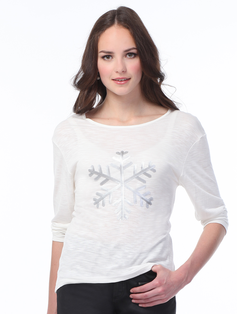 Описание: Тонкий драпируемый трикотаж с уплотнением нити в плетении. Свободный силуэт, удлиненный сзади, слегка спущенная пройма. Спереди вышивка из матовых серебристых пайеток аккуратно, комфортно к телу, обработана изнутри.