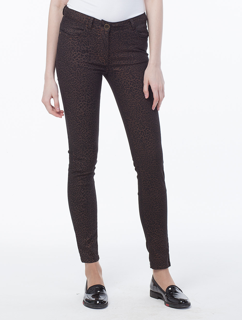 Описание: Очень эластичная ткань средей плотности с мягким полупрозрачным принтом медного цвета. Рисунок принта имитирует пятна шкуры леопарда.