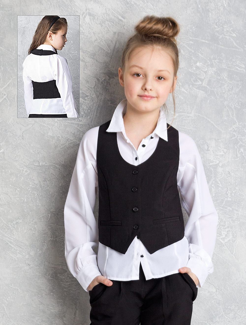 Описание: Застежка сзади на горловине на пуговицу, спинка собрана на эластичные нити.