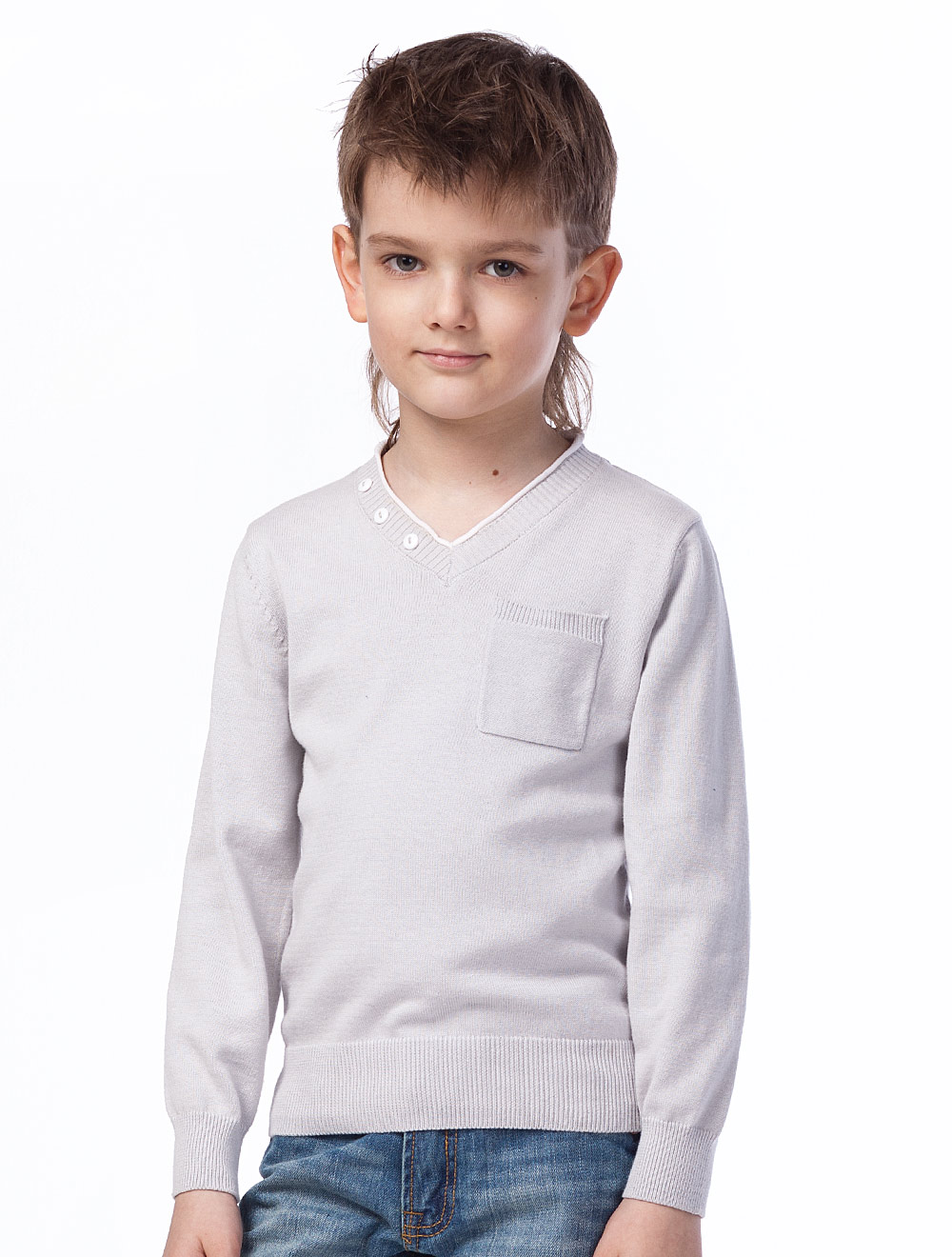 Описание: Джемпер для мальчика с V-образным вырезом горловины. Декоративная полоска по горловине выполнена из тонкого хлопкового трикотажа. Нагрудный карман настрочен изнаночной стороной наружу.