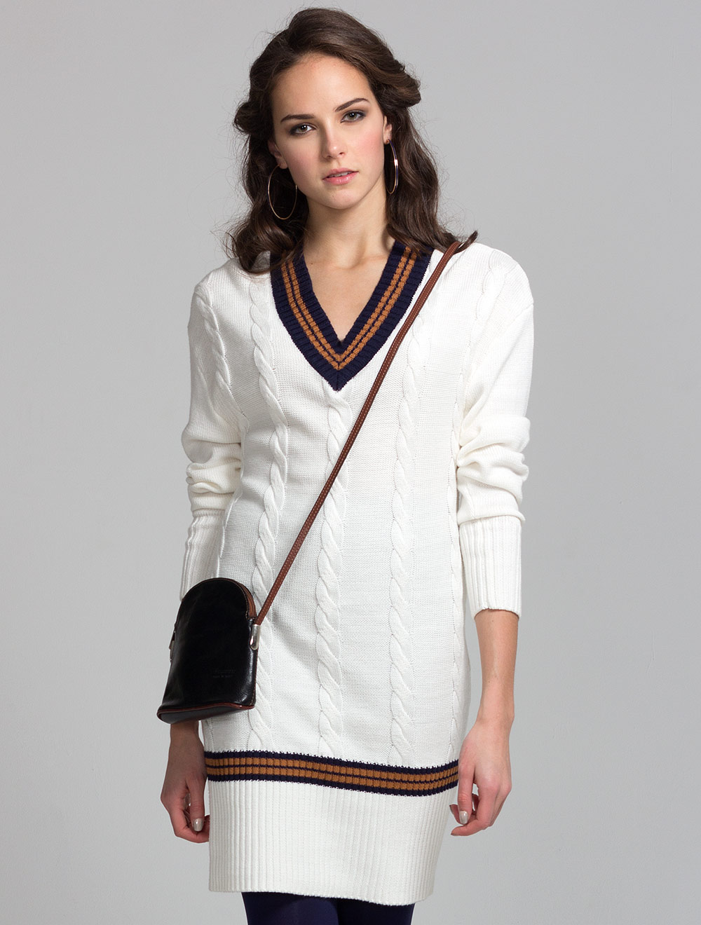 Описание: Крупная фактурная вязка, спереди украшена косами. Полуприлегающий силуэт в стиле 80-х - более свободный в верхней части, спущенная пройма и широкий рукав на узком длинном манжете. Низ на широкой резинке.