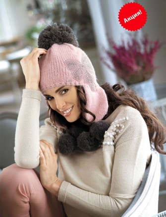 Шапка-ушанка Vassa, брусника с молоком, 56-58, (Kamea) Польша Есть 450