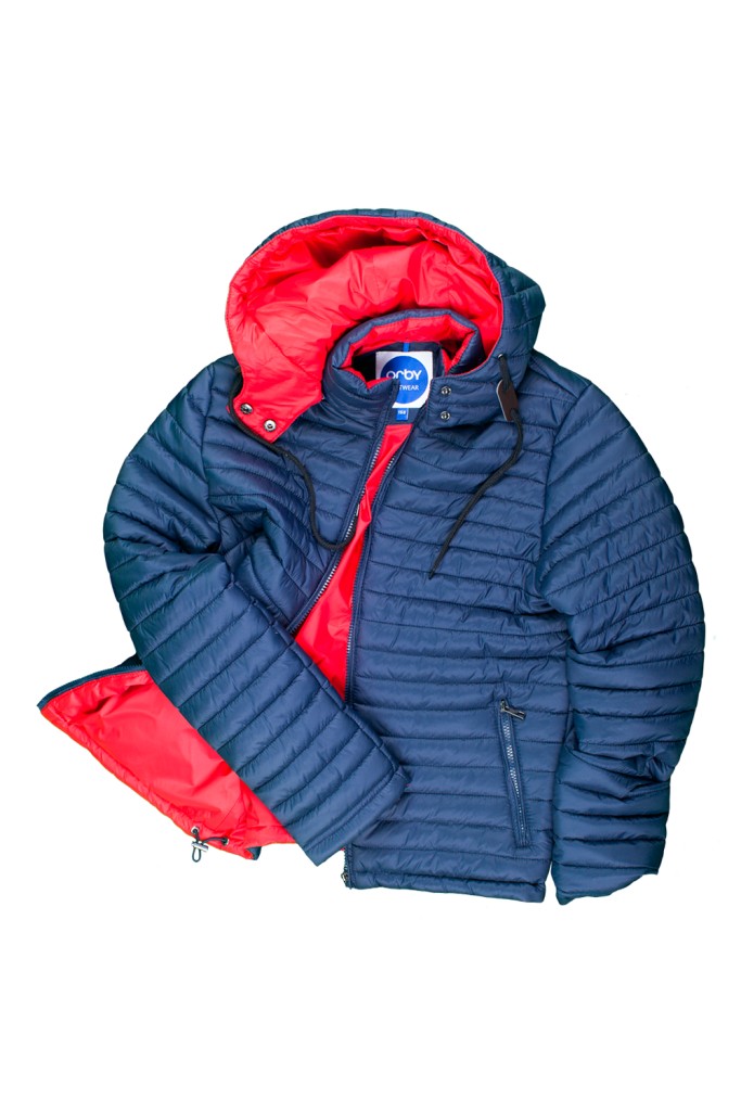 Легкая стеганая куртка в спортивном стиле. Контрастная подкладка, два кармана на молнии, регулировка по низу модели. Съемный капюшон с регулировкой на шнур с декоративными элементами из кожи.