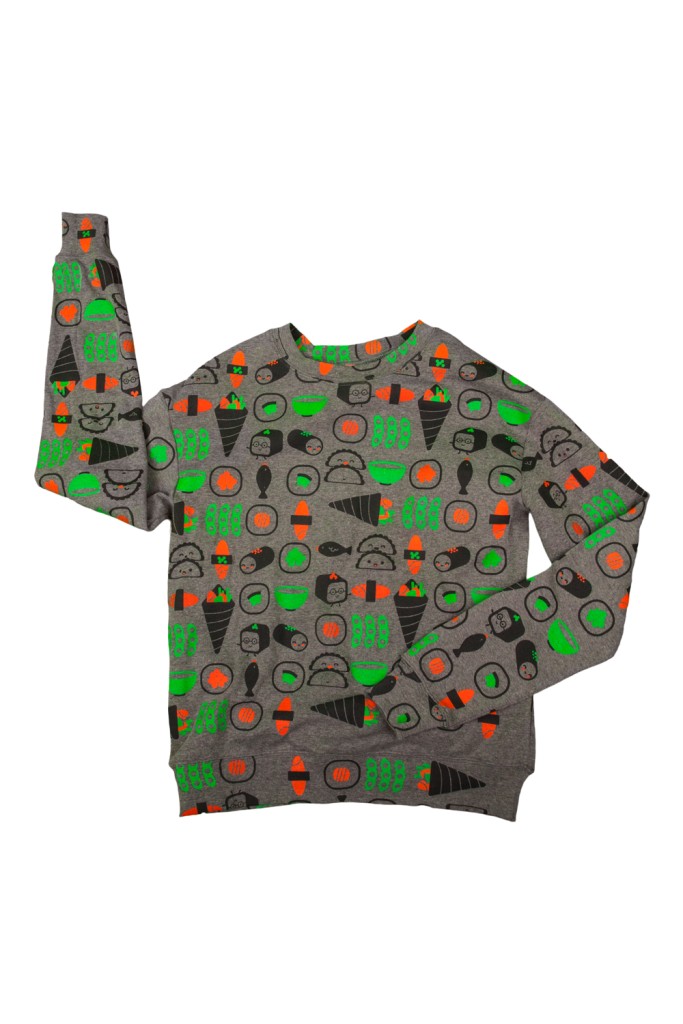 Комфортный свитшот с принтом для любителей японской кухни. Отлично комбинируется с джинсовыми моделями.