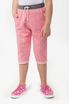 Капри для девочки из мягкого футера. Контрастная отстрочка вдоль боковых карманов. Пояс из отделочной ткани. Декоративные кожаные детали служат украшением и уплотнителем для люверсов.