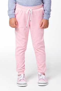 Брюки из хлопкового велюра с рибаной и шнурком на поясе, с удобными боковыми карманами. По низу брюк рибана.