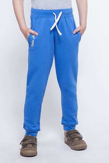 Брюки из футера с начесом. Пояс из бираны на резинке. Дополнительно ширина пояса регулируется шнуром. Манеты из рибаны по низу изделия. Изделие декорировано вышивкой рядом с карманом.